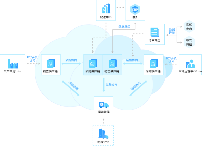 配送中心采購與銷售生態協同應用拓撲圖