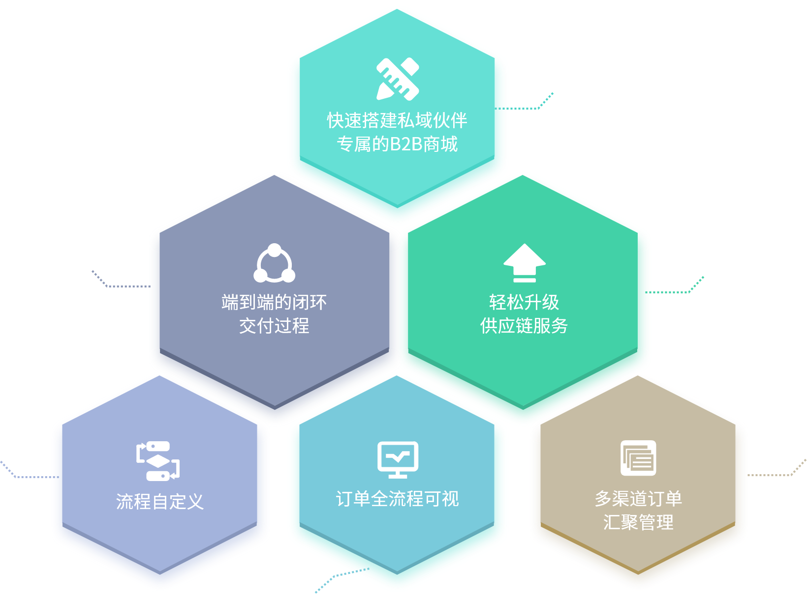 基于大型分布式架構方案、大數據分析與云計算技術,以訂單為核心,聚焦中心企業,打造高度協同 的商流、物流、資金流與信息流的供應鏈協同平臺。 并以此為基礎從在線交易延伸擴展到上下游用 戶的采購銷售、物流倉儲、支付結算、營銷推廣等供應鏈管理的不同層面,通過多種手段實現數據 互通、全鏈融合,實現企業自身與所在生態的供應鏈管理協同,提升供應鏈管理效率。