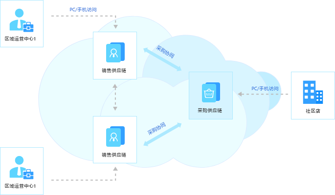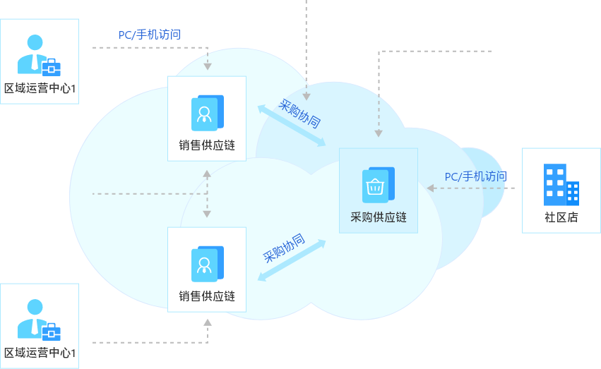 社區店采購生態協同應用拓撲圖